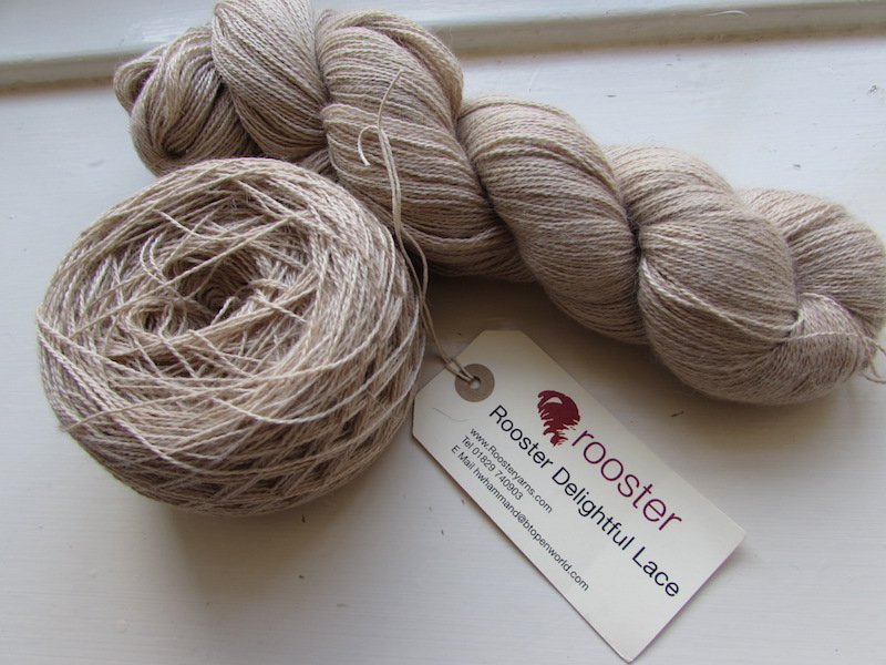 About the yarn, I had picked Fyberspates Scrumptious Lace, even had it winded but I changed my mind over the weekend since this lace is very thin and not very bouncy. I believe this shawl would look better with something with a bit more air in it so I chose this Rooster Delightful Lace I purchased at the EYF, it is a blend of merino and silk and I think it will be perfect. The colour is called Machu Pichu and it is this really nice champagne colour which looks a bit pink depending on the light.