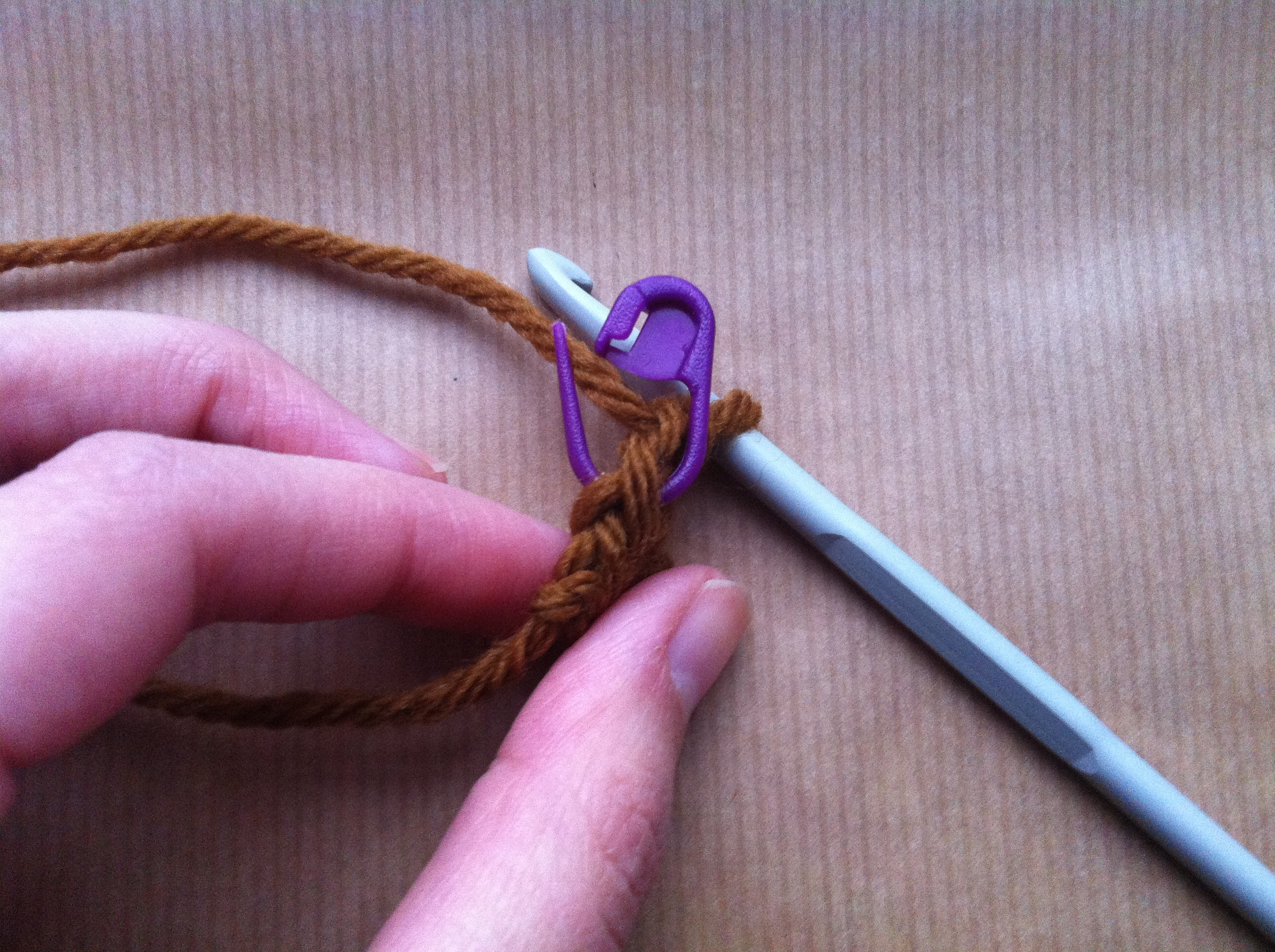 Found it? Now, insert your hook into that space, all the way to the back of the fabric.