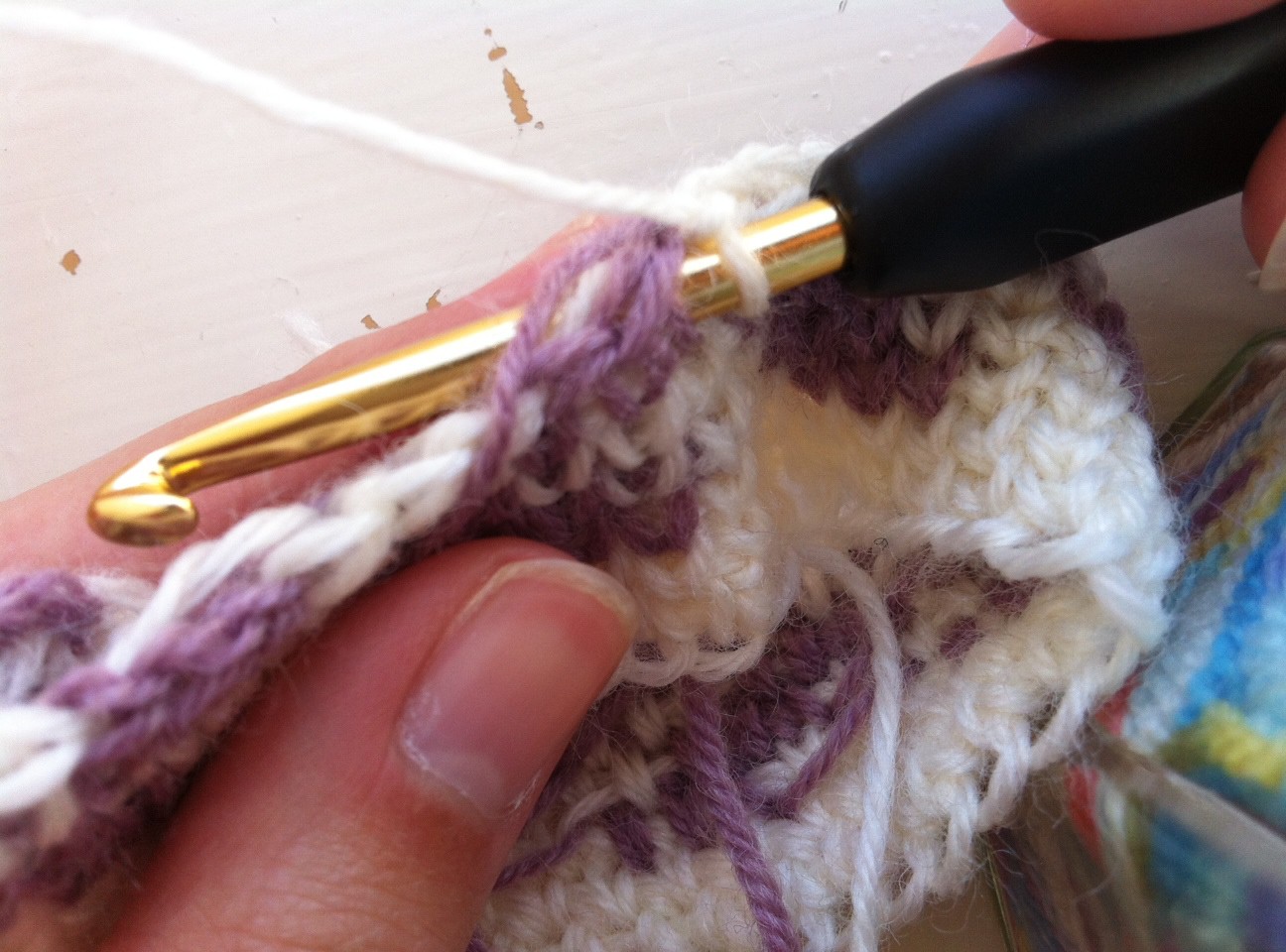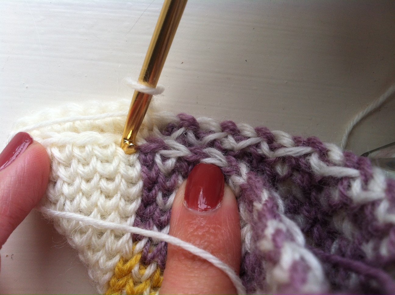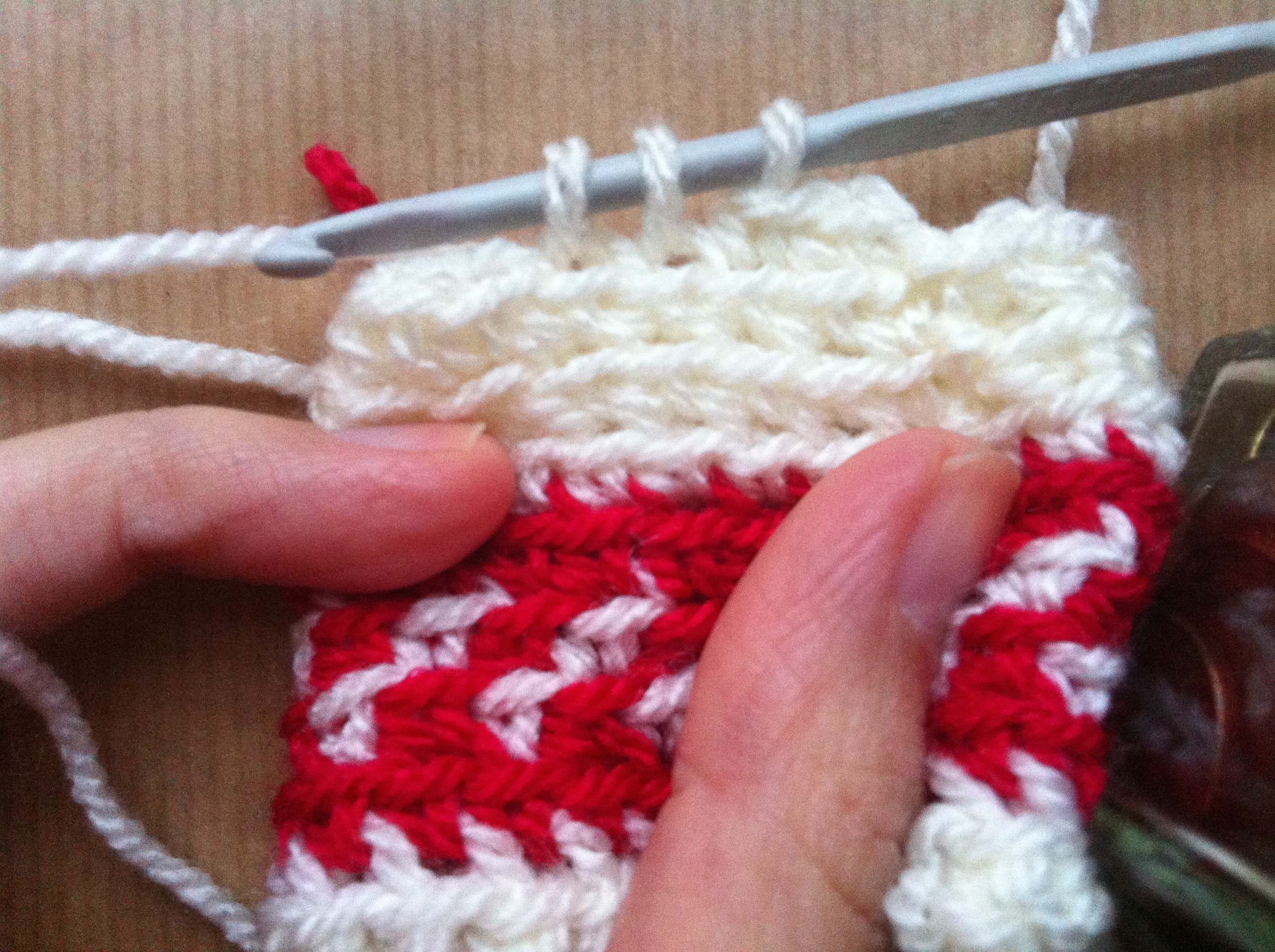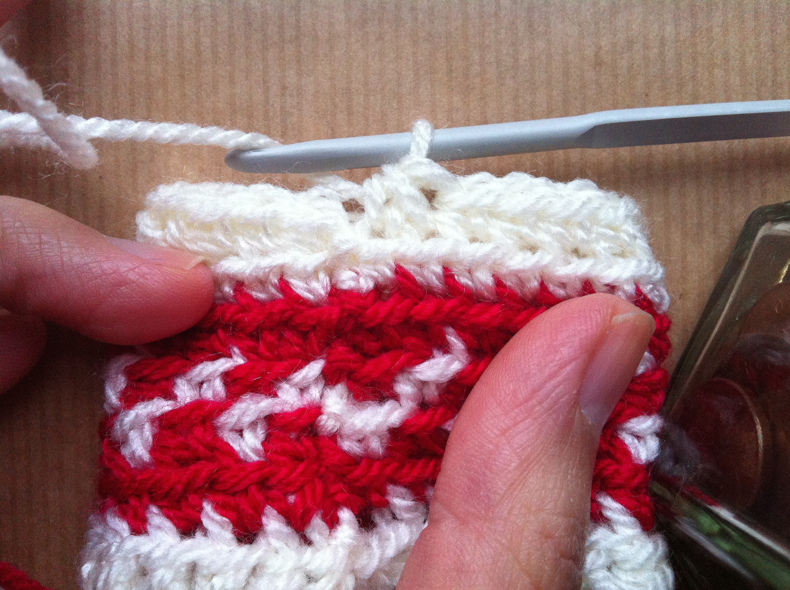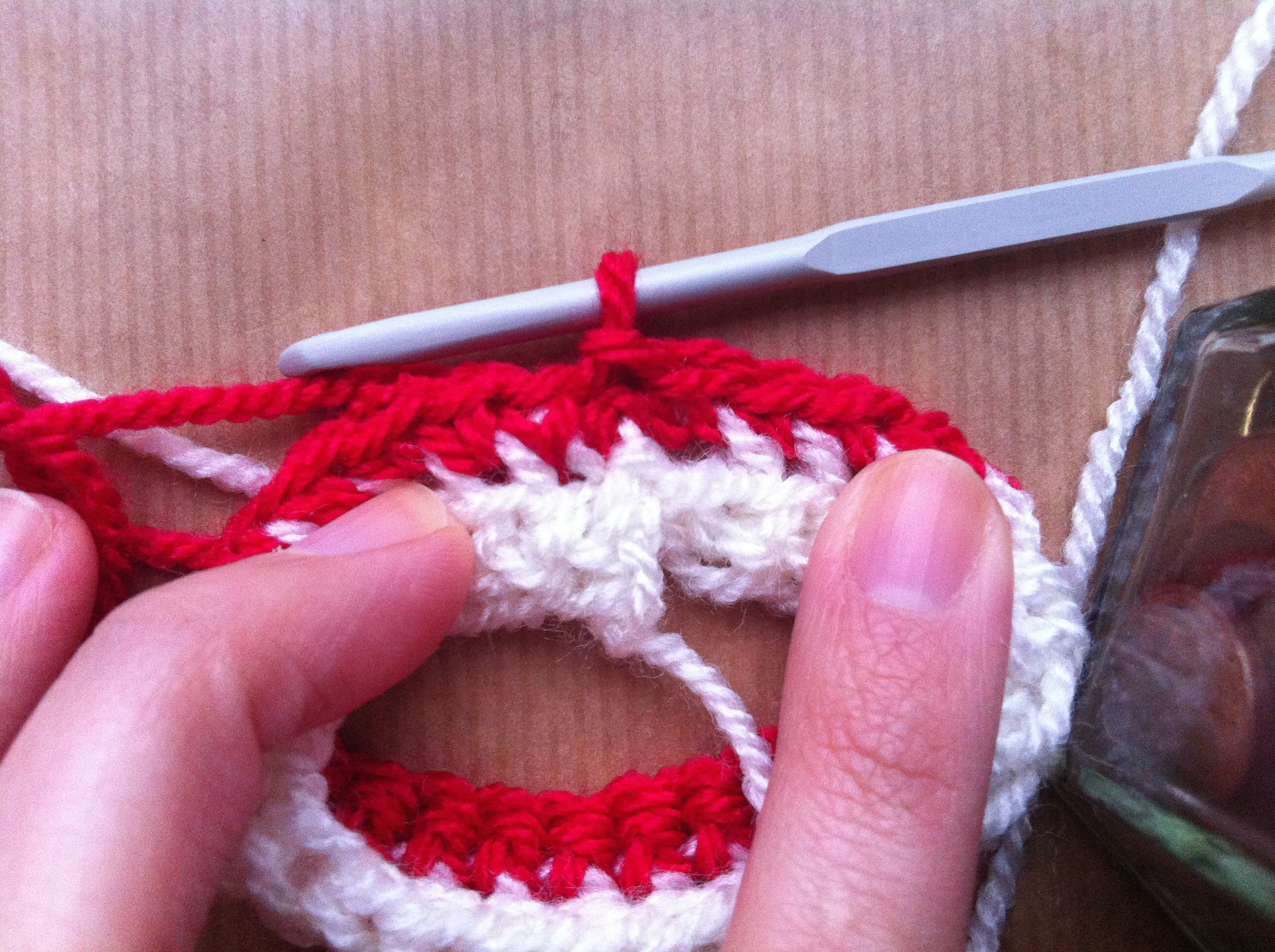 dc2tog: insert hook in stitch, yarn over and pull up a loop, insert hook in next stitch, yarn over and pull up a loop, yarn over and pull through 3 loops on hook.