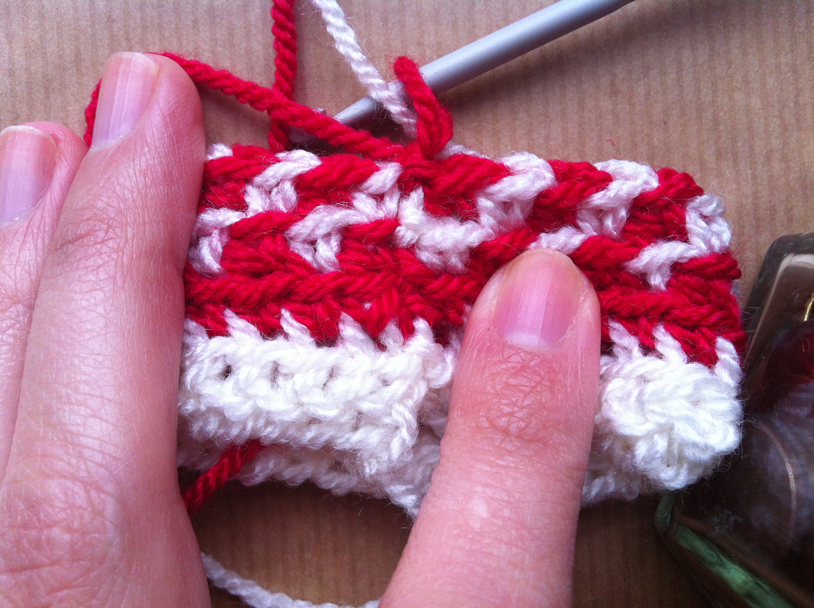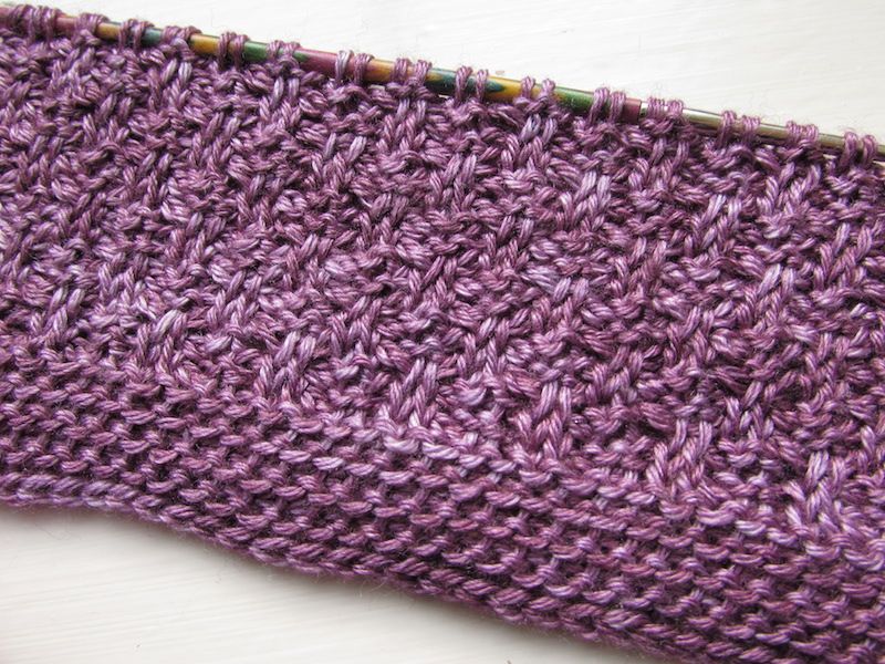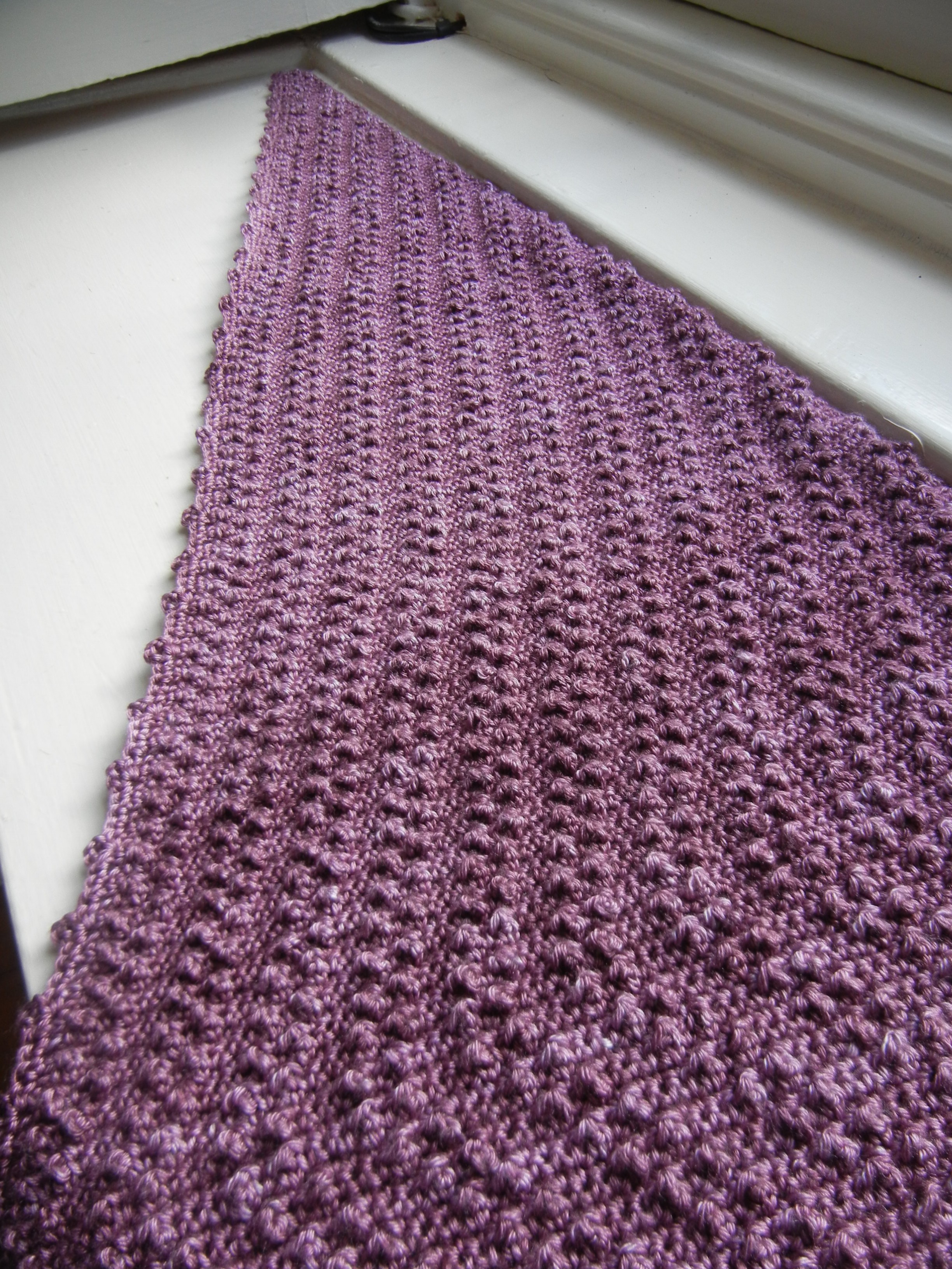 Now, the rows with the stitch pattern (with the bobbles) are very easy to do without thinking about them because there are no increases or decreases, and no matter in what part of the shawl you are a stitch pattern row will be a repeat of 6 stitches with just a couple of things to bear in mind.