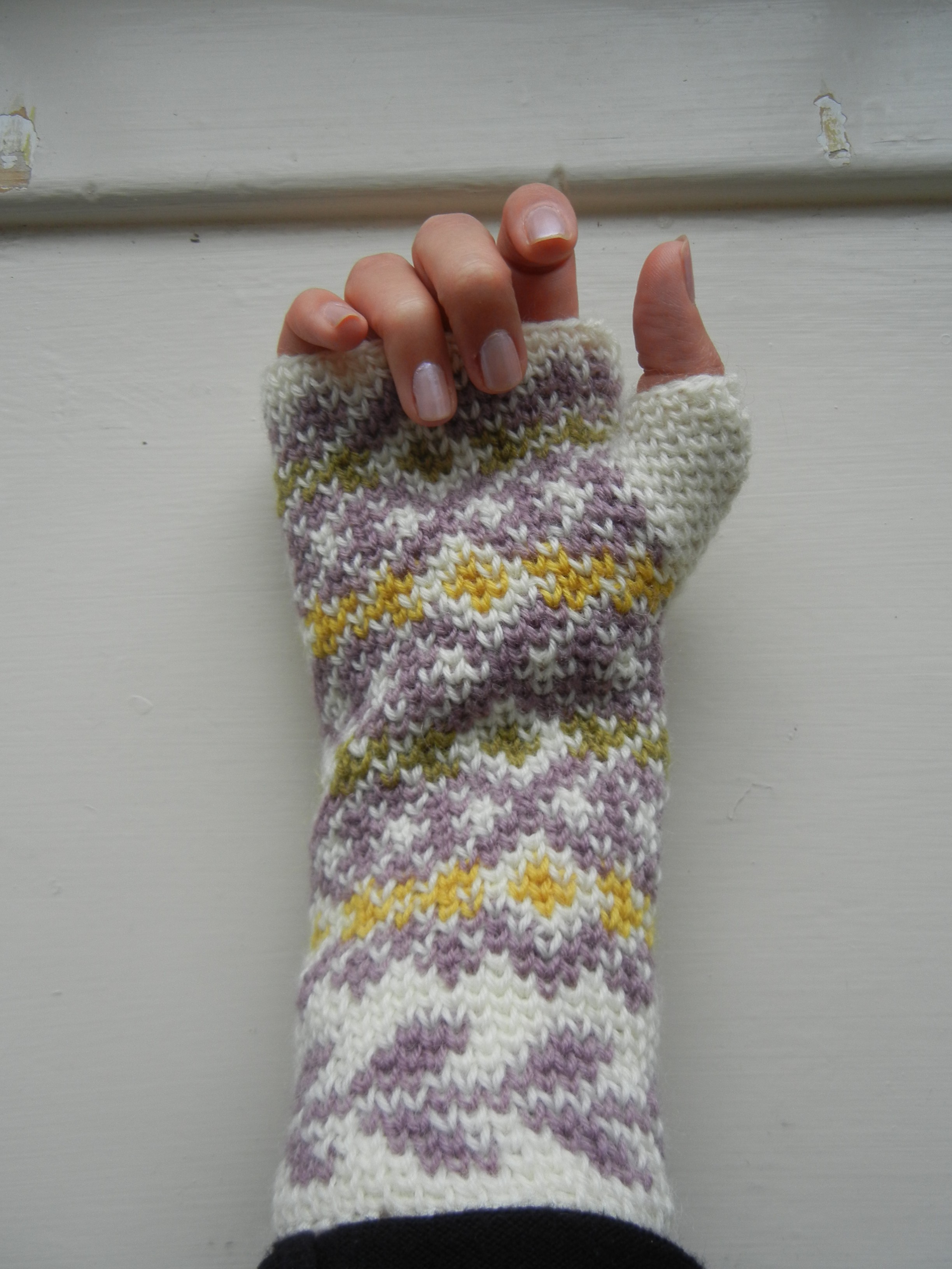 King Cole Merino Blend 4 ply: I used this yarn for my fingerless mitts and I think it is quite good for the price. You can buy it in balls or cones and some stores like Ginger Twist Studio sell them by weight (multiples of 50g) so that you can get just what you need.