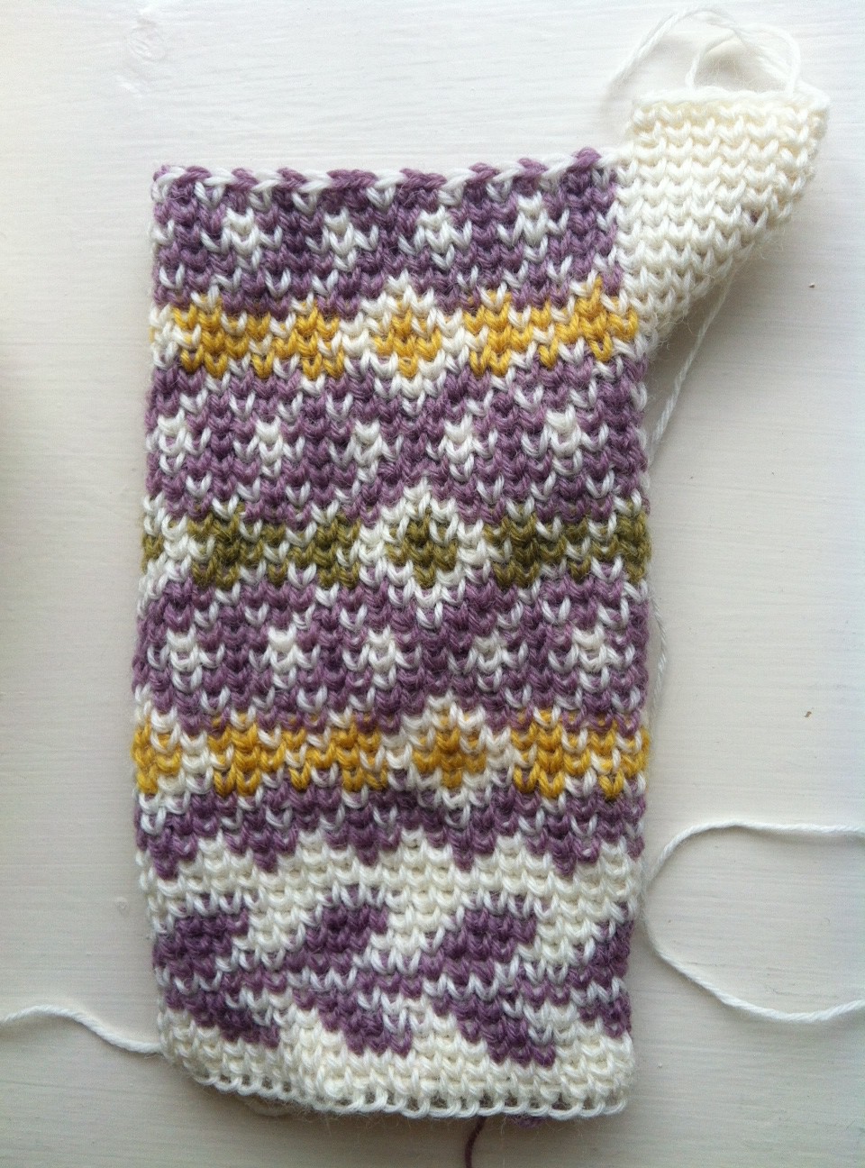 So ch 1, dc in first st, start with the 6-stitch-repeat and stop when you have one stitch left: you do the repeat once, then start the second one: dtr, dc, dtr…. and then you have only one st left, so you stop the repeat and do a dc.