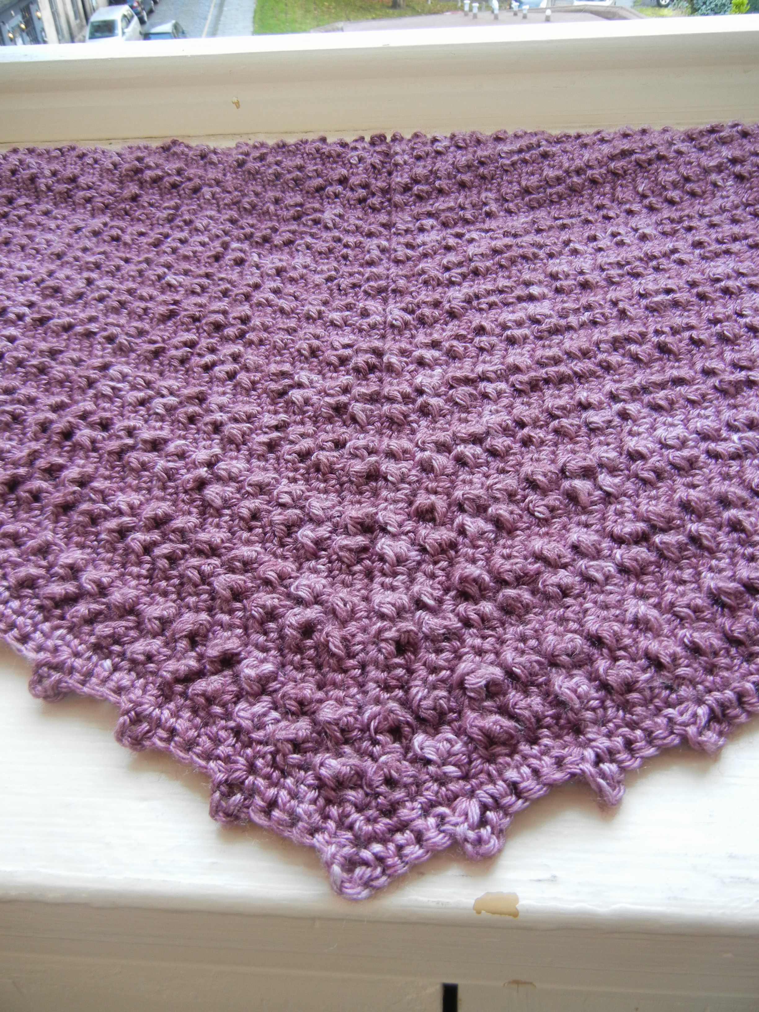 I am very excited to share another pattern with you, this time a shawl I have named “Uva” which means “grape” in Spanish. I just can’t help thinking of grapes when I look at it! This shawl uses just two stitches, dc and dtr, and it is so easy to make. I used Ginger’s Hand Dyed Splendor in Wine O’Clock (read about this yarn here) and I just love the final result.